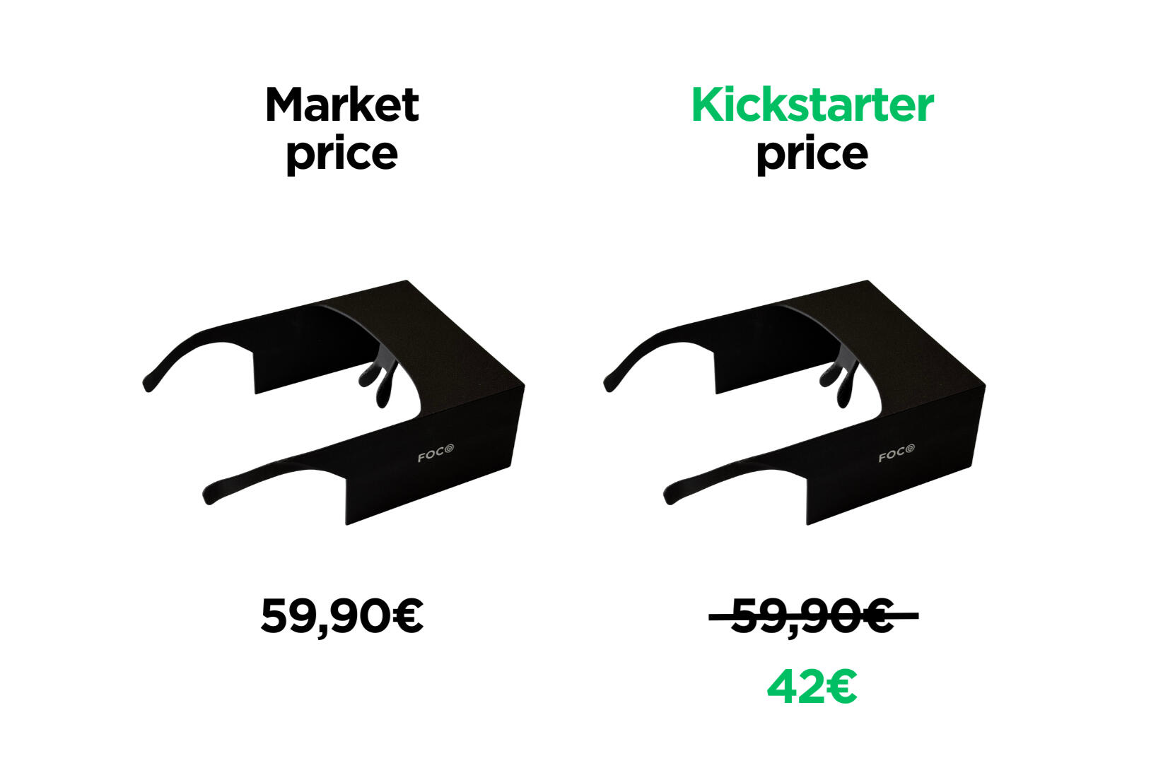 Las gafas FOCO son un producto completamente innovador y revolucionario, algo que nunca antes ha existido.Por eso necesitamos validar la demanda antes de pasar a la producción industrial a gran escala.Para ello usaremos Kickstarter, una plataforma global donde se compran productos por adelantado a personas con ideas innovadoras.La fabricación solo se realiza si se alcanza el objetivo mínimo de financiación; de no lograrse, se devuelve todo el dinero a los compradores.